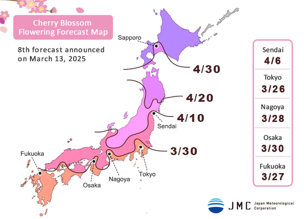 As spring 2025 approaches, cherry blossoms are beginning to bloom across Japan. In recent years, climate change has made it difficult even for Japanese people to predict the timing of sakura season (cherry blossoms). However, this year’s forecasts indicate that the blossoms will appear around the same time as usual, with no major deviations from last year.